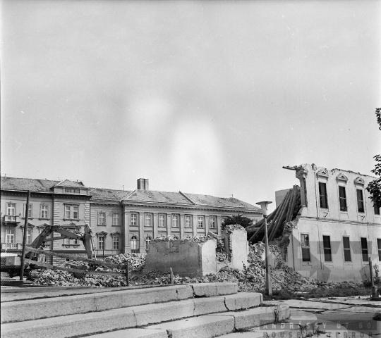 iskola utcakép bontás markológép Szekszárd Tolna megye Magyarország 1978 Bakó JenőFotó részletei