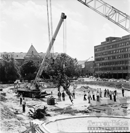 AZONOSÍTÓ: THM-BJ-00717 Férfi beszédet mond - transzparensen felirat: "Munkánk minőségének és hatékonyságának javításával, többletvállalásokkal készülünk a NAGY OKT. SZOC. FORR. 60. évfordulójára". [Az októberi orosz forradalom (kommunista propagandában: nagy októberi szocialista forradalom) 1917. november 6–12. (október 24–30.) között zajlott, amelynek során a bolsevikok a Téli Palota ostroma után az ott székelő Ideiglenes Kormány tagjait letartóztatták, és Lenin vezetésével, akit a Népbiztosok Tanácsa elnökévé választottak, puccsal átvették a hatalmat. Hazánkban ez a nap 1950-től 1989-ig pártállami ünnep volt.] [A szocialista brigádmozgalom szovjet mintára az 1950-es évek végén kezdett kibontakozni Magyarországon, és rendszerváltoztatáskor szűnt meg. Kezdetben csak az ipari üzemekben és gyárakban alakultak meg a brigádok, majd az agráriumban és a hivatali szférában is létrejöttek. A mozgalom jelszava: „Szocialista módon dolgozni, tanulni és élni” volt.] HELYSZÍN: Szekszárd, Tolna megye DÁTUM: 1977 FOTÓS: Bakó Jenő