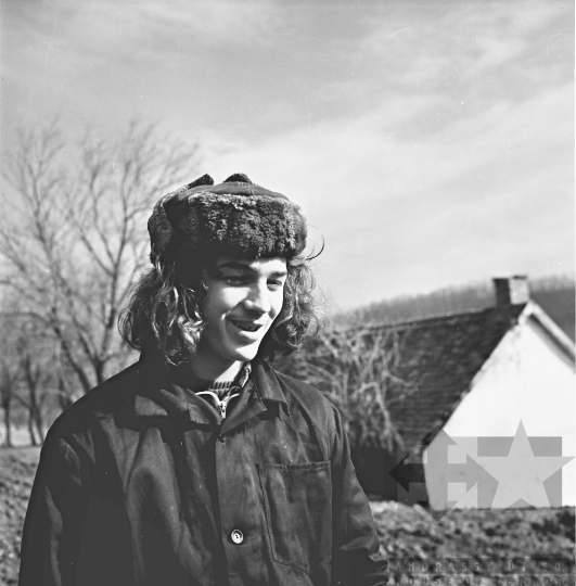 AZONOSÍTÓ: THM-BJ-00717 Férfi beszédet mond - transzparensen felirat: "Munkánk minőségének és hatékonyságának javításával, többletvállalásokkal készülünk a NAGY OKT. SZOC. FORR. 60. évfordulójára". [Az októberi orosz forradalom (kommunista propagandában: nagy októberi szocialista forradalom) 1917. november 6–12. (október 24–30.) között zajlott, amelynek során a bolsevikok a Téli Palota ostroma után az ott székelő Ideiglenes Kormány tagjait letartóztatták, és Lenin vezetésével, akit a Népbiztosok Tanácsa elnökévé választottak, puccsal átvették a hatalmat. Hazánkban ez a nap 1950-től 1989-ig pártállami ünnep volt.] [A szocialista brigádmozgalom szovjet mintára az 1950-es évek végén kezdett kibontakozni Magyarországon, és rendszerváltoztatáskor szűnt meg. Kezdetben csak az ipari üzemekben és gyárakban alakultak meg a brigádok, majd az agráriumban és a hivatali szférában is létrejöttek. A mozgalom jelszava: „Szocialista módon dolgozni, tanulni és élni” volt.] HELYSZÍN: Szekszárd, Tolna megye DÁTUM: 1977 FOTÓS: Bakó Jenő