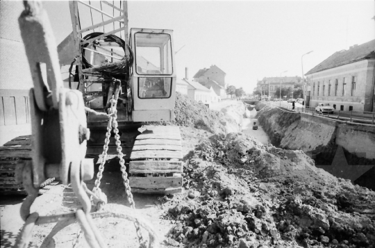 építkezés utcakép meder csatornázás munkagép Szekszárd Tolna megye Magyarország 1980 Bakó JenőFotó részletei