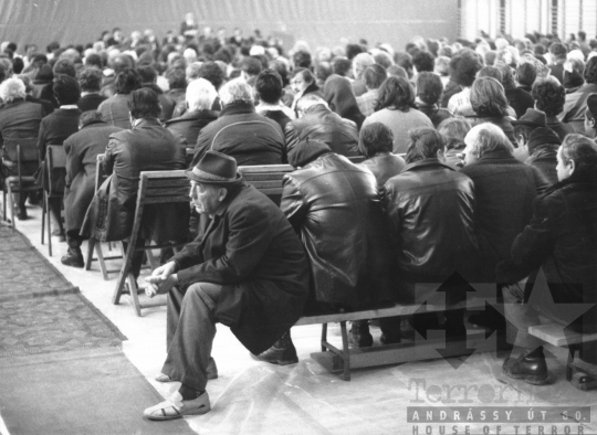 AZONOSÍTÓ: THM-BJ-00716 A rendezvény résztvevői. [A szocialista brigádmozgalom szovjet mintára az 1950-es évek végén kezdett kibontakozni Magyarországon, és rendszerváltoztatáskor szűnt meg. Kezdetben csak az ipari üzemekben és gyárakban alakultak meg a brigádok, majd az agráriumban és a hivatali szférában is létrejöttek. A mozgalom jelszava: „Szocialista módon dolgozni, tanulni és élni” volt.] HELYSZÍN: Szekszárd, Tolna megye DÁTUM: 1977 FOTÓS: Bakó Jenő