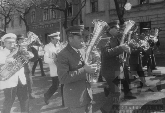 felvonulás hangszer zenekar rendőr egyenruha Szekszárd Tolna megye Magyarország 1996 Bakó JenőFotó részletei