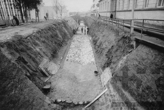 utcakép útépítés patak séd meder Szekszárd Tolna megye Magyarország 1977 Bakó JenőFotó részletei