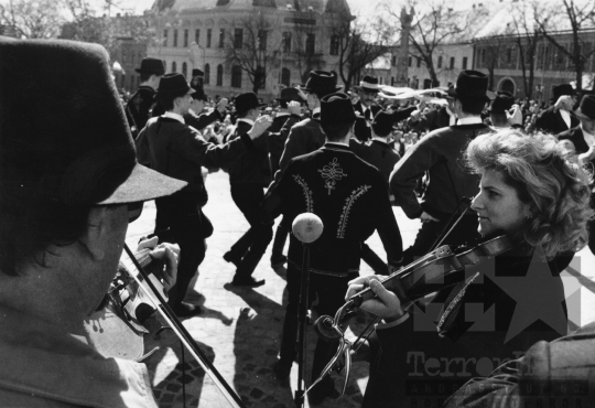 nemzeti ünnep március 15. népviselet ünnepség zenész hegedű néptánc Szekszárd Tolna megye Magyarország 1988 Bakó JenőFotó részletei
