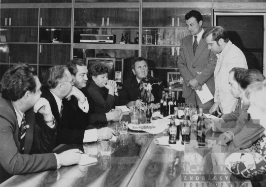 értekezlet Márka üdítő Pepsi pohár üveg tanácselnök testvérváros delegáció diplomácia MSZMP Szekszárd Tolna megye Magyarország 1978 Bakó JenőFotó részletei