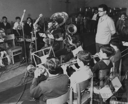 zenekar úttörő nyakkendő rádiófelvétel hangszer kotta iskola Szekszárd Tolna megye Magyarország 1968 Bakó JenőFotó részletei