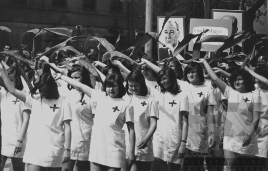 szocialista állami ünnep felvonulás utcakép transzparens Szekszárd Tolna megye Magyarország 1968 Bakó JenőFotó részletei
