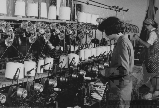 textilipar selyemgyár üzemcsarnok orsózó babos kendő Tolna Tolna megye Magyarország 1976 Bakó JenőFotó részletei