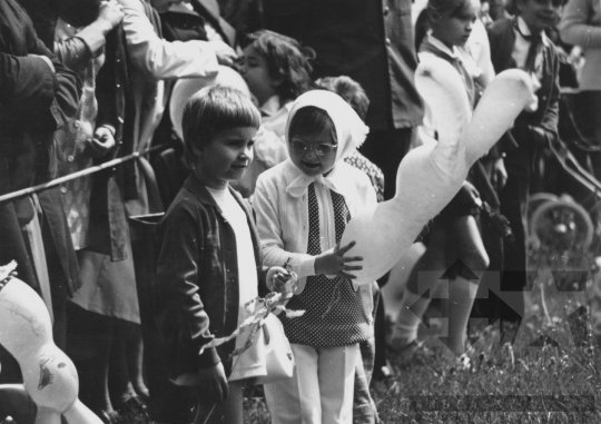 szocialista állami ünnep május 1. munka ünnepe felvonulás gyerek lufi úttörő Szekszárd Tolna megye Magyarország 1980 Bakó JenőFotó részletei
