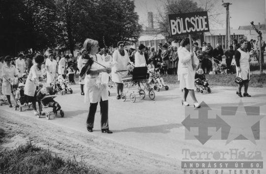 szocialista állami ünnep május 1. munka ünnepe felvonulás utcakép Tamási Tolna megye Magyarország 1986 Bakó JenőFotó részletei