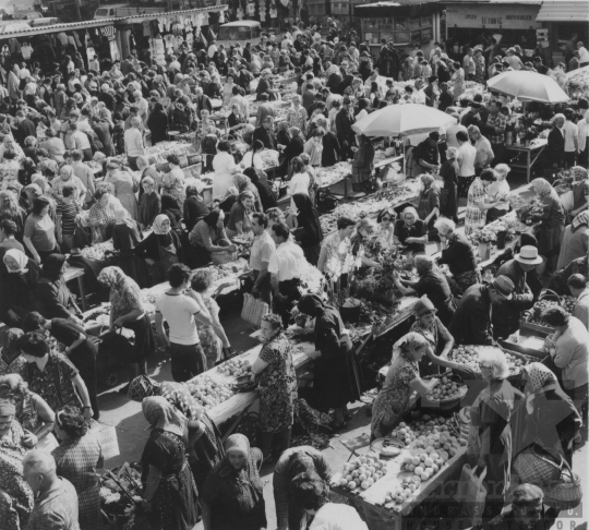 árus kofa zöldség stand napernyő Szekszárd Tolna megye Magyarország 1976 Bakó JenőFotó részletei