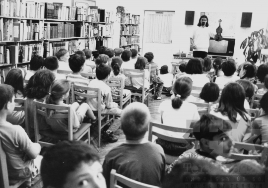 általános iskola diák könyvtár bemutató hegedű hangszer Szekszárd Tolna megye Magyarország 1989 Bakó JenőFotó részletei