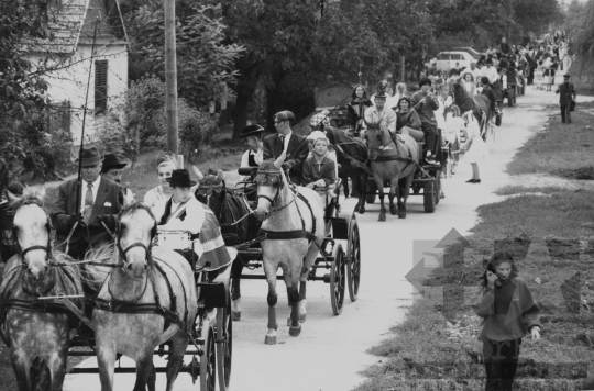 ünnepség szüret felvonulás népszokás népviselet lovas kocsi Gerjen Tolna megye Magyarország 1990 Bakó JenőFotó részletei