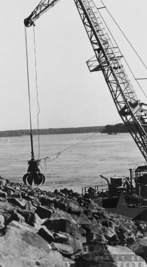 gát part építkezés daru Tolna megye Magyarország 1977 Bakó JenőFotó részletei