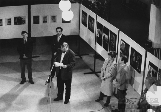 AZONOSÍTÓ: THM-BJ-00714 Férfi beszédet mond. [A szocialista brigádmozgalom szovjet mintára az 1950-es évek végén kezdett kibontakozni Magyarországon, és rendszerváltoztatáskor szűnt meg. Kezdetben csak az ipari üzemekben és gyárakban alakultak meg a brigádok, majd az agráriumban és a hivatali szférában is létrejöttek. A mozgalom jelszava: „Szocialista módon dolgozni, tanulni és élni” volt.] HELYSZÍN: Szekszárd, Tolna megye DÁTUM: 1977 FOTÓS: Bakó Jenő