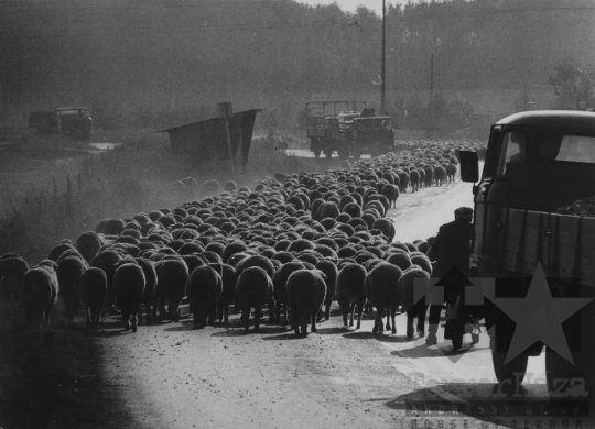 juh nyáj utcakép autó Bátaszék Tolna megye Magyarország 1977 Bakó JenőFotó részletei
