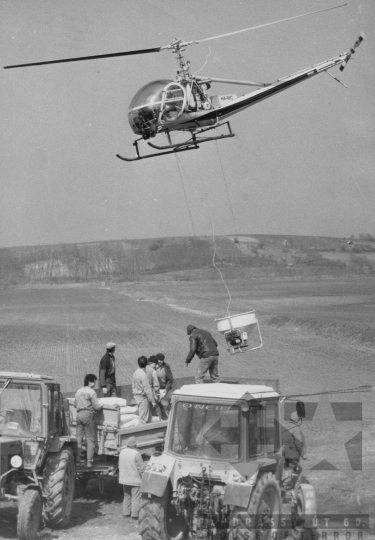 helikopter vegyszer permetezés gyomirtás termelőszövetkezet Bonyhád Tolna megye Magyarország 1985 Bakó JenőFotó részletei