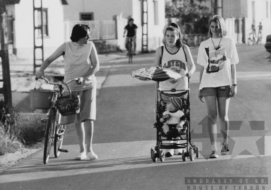 utcakép babakocsi kerékpár Báta Tolna megye Magyarország 1980 Bakó JenőFotó részletei