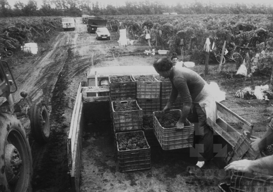 szüret nagyüzem szőlő láda teherautó IFA autó szőlőtőke termelőszövetkezet Bátaszék Tolna megye Magyarország 1980 Bakó JenőFotó részletei