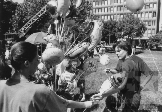 szocialista állami ünnep május 1. munka ünnepe majális lufi Szekszárd Tolna megye Magyarország 1987 Bakó JenőFotó részletei