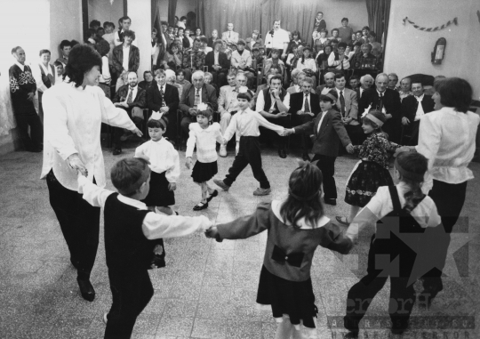 farsang bál jelmez körtánc Keszőhidegkút Tolna megye Magyarország 1978 Bakó JenőFotó részletei
