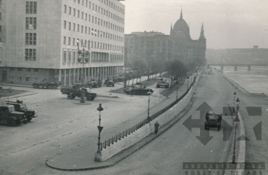 rakpart látkép székház rendőrkapitányság karhatalom Parlament harckocsi teherautó Jászai Mari tér Budapest Döme István