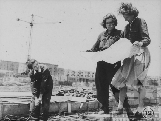 fekete-fehér diafilm propaganda építkezés ötéves terv 1952Fotó részletei