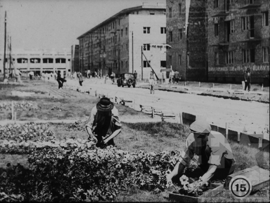 fekete-fehér diafilm propaganda építkezés ötéves terv 1952