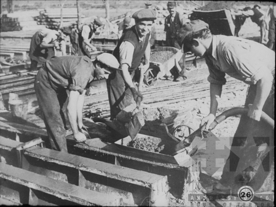 fekete-fehér diafilm propaganda építkezés ötéves terv 1952Fotó részletei