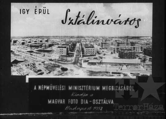 fekete-fehér diafilm propaganda építkezés ötéves terv Sztálinváros Dunaújváros 1952Fotó részletei