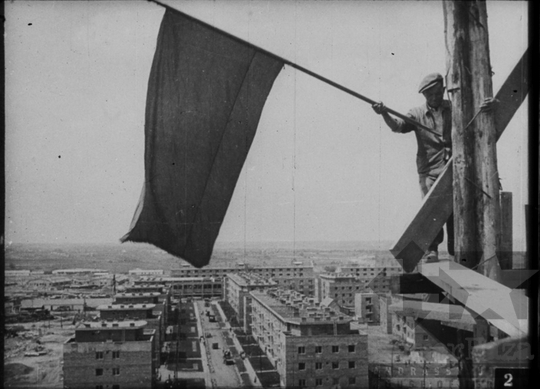 fekete-fehér diafilm propaganda építkezés ötéves terv Sztálinváros Dunaújváros 1952Fotó részletei
