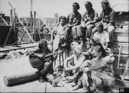 fekete-fehér diafilm propaganda építkezés ötéves terv Sztálinváros Dunaújváros 1952Fotó részletei
