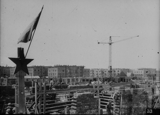 fekete-fehér diafilm propaganda építkezés ötéves terv Sztálinváros Dunaújváros 1952Fotó részletei