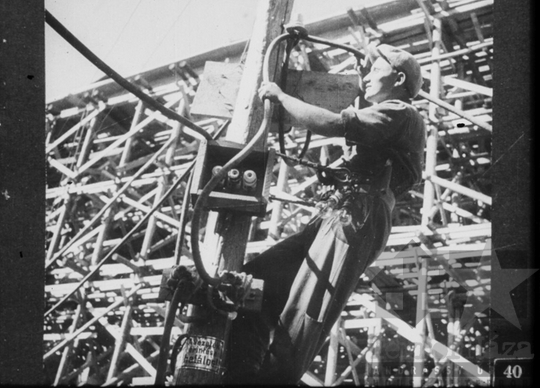 fekete-fehér diafilm propaganda építkezés ötéves terv Sztálinváros Dunaújváros 1952Fotó részletei