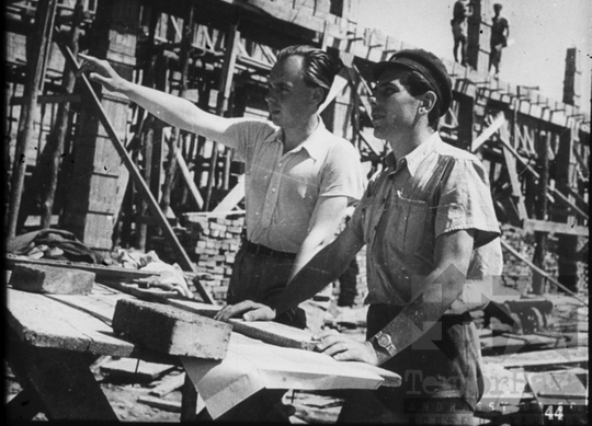 fekete-fehér diafilm propaganda építkezés ötéves terv Sztálinváros Dunaújváros 1952Fotó részletei