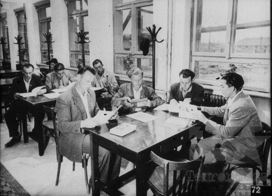 fekete-fehér diafilm propaganda építkezés ötéves terv Sztálinváros Dunaújváros 1952Fotó részletei