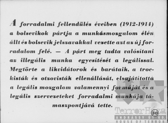 fekete-fehér diafilm propaganda Lenin Sztálin bolsevizmus szovjet munkásmozgalom kommunizmus 1951Fotó részletei