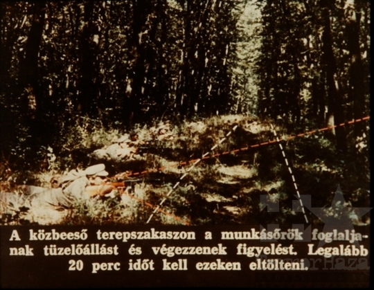 színes diafilm propaganda munkásőr oktatófilm munkásőrség karhatalom egyenruha terep harcmód kutatás felderítő-kutató csoport erdő 1965Fotó részletei