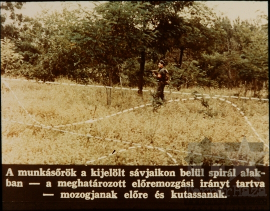 színes diafilm propaganda munkásőr oktatófilm munkásőrség karhatalom egyenruha terep harcmód kutatás felderítő-kutató csoport 1965Fotó részletei