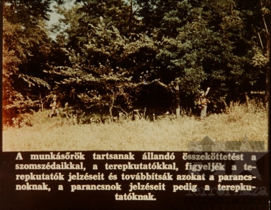 színes diafilm propaganda munkásőr oktatófilm munkásőrség karhatalom egyenruha terep harcmód kutatás felderítő-kutató csoport 1965Fotó részletei