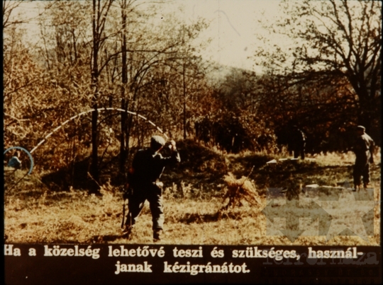 színes diafilm propaganda munkásőr oktatófilm munkásőrség karhatalom egyenruha terep harcmód kutatás felderítő-kutató csoport kézigránát egyenruha 1965Fotó részletei