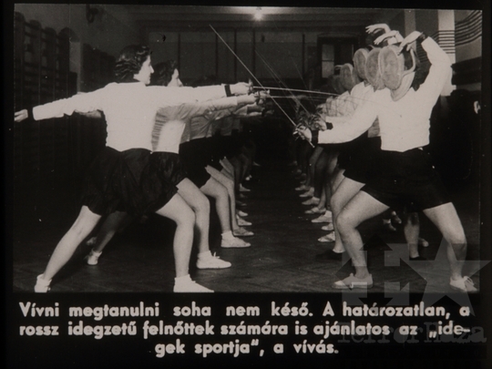fekete-fehér diafilm ismeretterjesztő sport egészség torna vívás 1959Fotó részletei