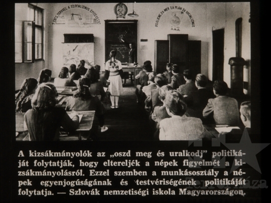 fekete-fehér diafilm propaganda ifjúsági mozgalmi élet KISZ politika politizálás társadalmi osztály testvériség egyenlőség kizsákmányolás munkásosztály tőkésosztály iskola szlovák nemzetiség 1962Fotó részletei