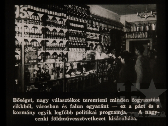 fekete-fehér diafilm propaganda ifjúsági mozgalmi élet KISZ politika politizálás fogyasztás szövetkezeti bolt üzlet 1962