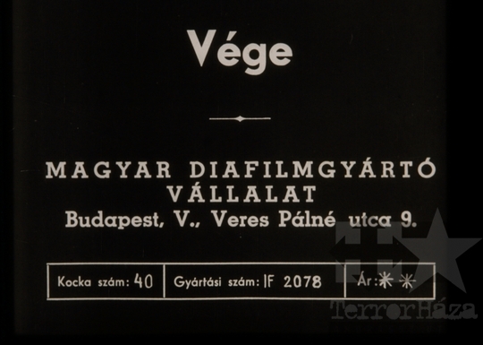 KIADÓ: Magyar Diafilmgyártó Vállalat, Budapest a Magyar Kommunista Ifjúsági Szövetség Központi Bizottsága Agitációs és Propaganda Osztályának megbízásából
