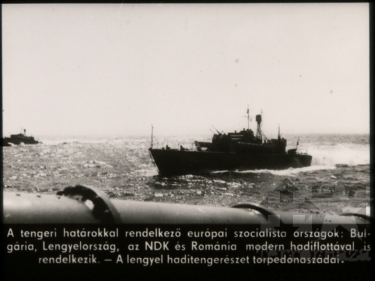 fekete-fehér diafilm propaganda szocializmus társadalom osztály honvédelem fegyverbarátság szocialista ország haditengerészet hadihajó 1975Fotó részletei