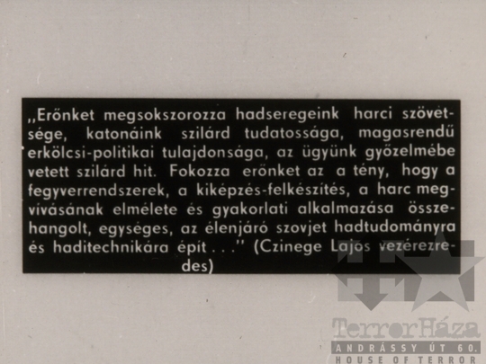 fekete-fehér diafilm propaganda szocializmus társadalom osztály honvédelem fegyverbarátság szocialista ország idézet Czinege Lajos 1975Fotó részletei