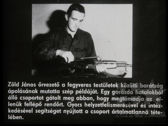 fekete-fehér diafilm propaganda hidegháború katona néphadsereg haza portré egyenruha őrszolgálat fegyver 1968Fotó részletei