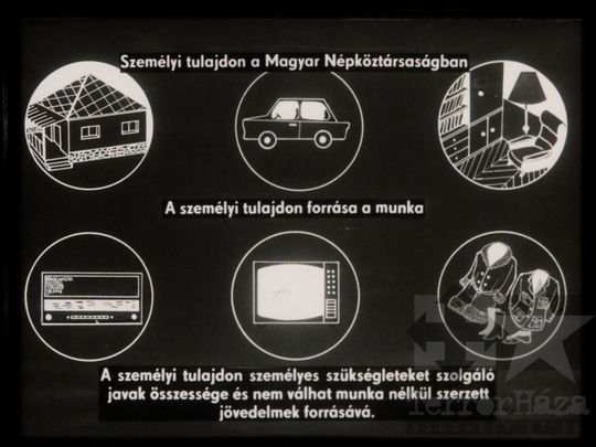 fekete-fehér diafilm propaganda szocializmus társadalom tulajdonviszony vagyon jövedelem magántulajdon 1976Fotó részletei