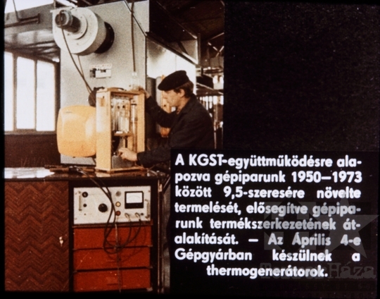 színes diafilm propaganda szocialista ország gazdaság gépipar termelés Április 4-e Gépgyár termogenerátor KGST 1976Fotó részletei
